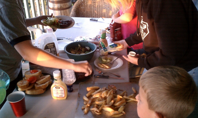 This Sunday was a little different than the normal. The Gila Valley Temple was dedicated ,and we were able to to see it from a broadcast that was streamed to our Stake Center. After we headed over to my parents were we found Rustyn picking up chicks. For dinner the Lunds came over and we ended up throwing a dinner together. I ended up making a Food Mob! dinner with the perfect steak, fries, a salad my mom made, and garlic bread. We ate outside on the patio while the sun was setting. It was a nice, relaxing day.