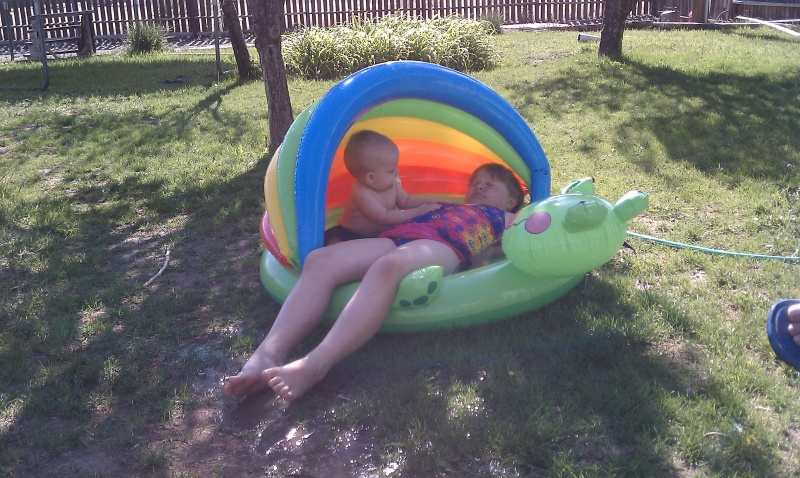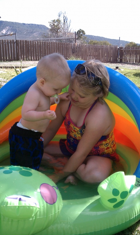 Grandma and Aunt Mylea went to Show Low today and brought back a pool for Rustyn. He wasn’t too sure about it to begin with, but ended up having a good time when Mylea ended up joining him. Thanks Grandma..
