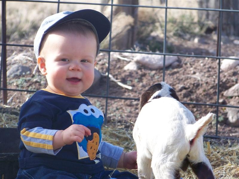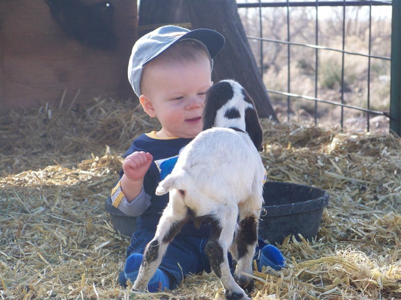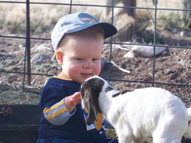 We got done with lunch at Grandma’s so we headed out to the ranch to see the new baby goats. Rustyn even got to meet BBQ (the baby boy goat). TK is still very, very pregnant.